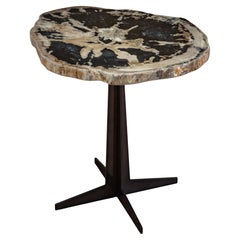 Side or Cocktail Table, Petrified Wood Slab with Metal Base