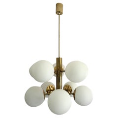 1970s Sputnik Chandelier, 8 Glass Globes, Vintage Lighting Design