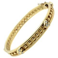 Retro Yellow Gold 0.40 CT Natural Diamond Heart Bangle Bracelet