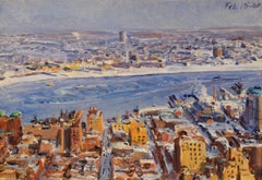 View of the East River in Winter, early 20th century oil painting of New York C.