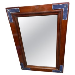 1950's Stitched leather and pearwood wall mirror by Jacques Adnet
