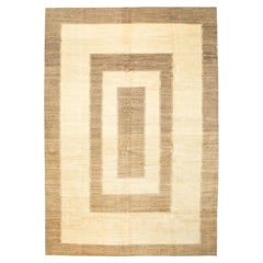 Large Persian Gabbeh rug woven 2010, featuring a calm geometric composition with soft rectangular forms arranged across a warm beige field. The subtle variations in natural wool tone...