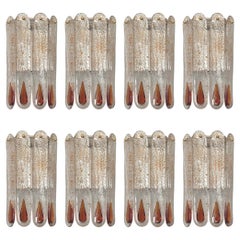 Gorgeous and stunning Set of Eight Italian Murano glass Wall Sconces from 1970s. These fixtures were made during the 1970s in Italy by Mazzega.