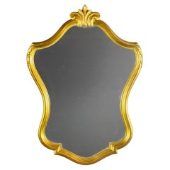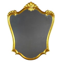 Charming Rococo style wall mirror, made in the 20th century. Gilded wooden frame, with elegant, sinuous lines, decorated with a stylized shell mot...