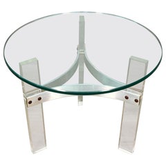 Round Glass, Lucite and Satin Chrome Side Table by Charles Hollis Jones, 1970s