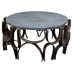 A rare and early studio made loop table with original inset slate top by Paul Evans.