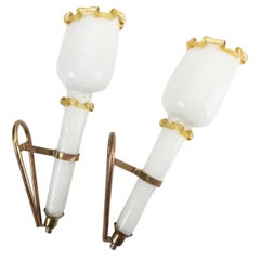 Set of 2 wall sconces in the form of torches. Opaline glass and brass holders.