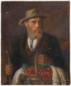 This charming early 20th century French portrait depicts a bearded gentleman with a basket of cherries. The artist has captured the sitter with hazy brushstrokes that evoke a sense o...