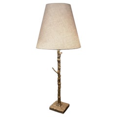 Table lamp featuring a bronze stem cast using the lost wax technique, modeled on an actual rose plant. The bronze finish is golden, providing a warm and elegant aesthetic. Topped wit...