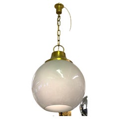 An Elegant, Sober Italian Mid-Century Modern Neoclassical frosted glass ball pendant / chandelier/ lantern by the Italian Master, Luigi Caccia Dominioni. The piece is a balanced work...