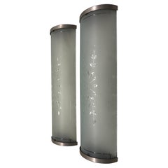 Pair of Large French Art Deco Engraved Opaque Glass Wall Sconces, Atelier Perzel