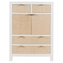 A Contemporary Raffia and White-Lacquered Dresser, Cabinet. Very Chic.