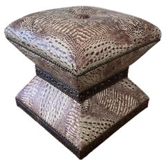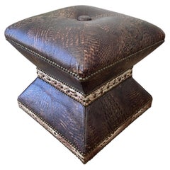 Faux Crocodile Custom Ottoman with Nailheads Brown