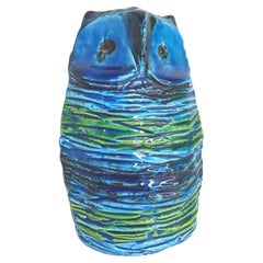 Bitossi Rimini Blue Ceramic Owl Sculpture by Aldo Londi, Italy, 1960s