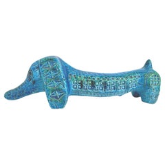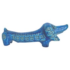 Bitossi Rimini Blue Ceramic Sausage Dog Dachshund Sculpture by Aldo Londi, Italy