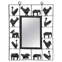Wrought-iron animal mirror by Atelier Marolles, France, 1950s.