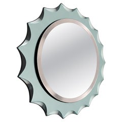 Elegant Mid-Century Modern Italian mirror from the 1960s, designed in a refined sunburst form and executed in a distinctive turquoise-toned glass frame. The silhouette is defined by ...