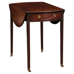 English George III Mahogany Pembroke Table in Mahogany with 1 Drawer and Square Tapered legs, Late 18th Century