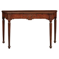 Italian Neoclassical Walnut Console Table with Shaped Sides, Carved Wreath on Frieze and Fluted Legs, Late 18th Century