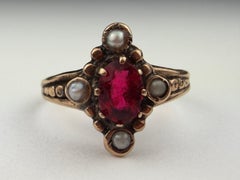 Antique Victorian Red Garnet and Seed Pearl Dinner Ring