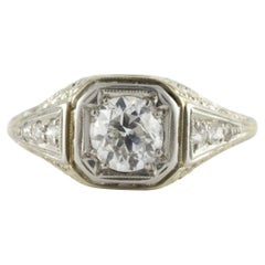 Art Deco 18K White Gold Diamond and Filigree Engagement Ring