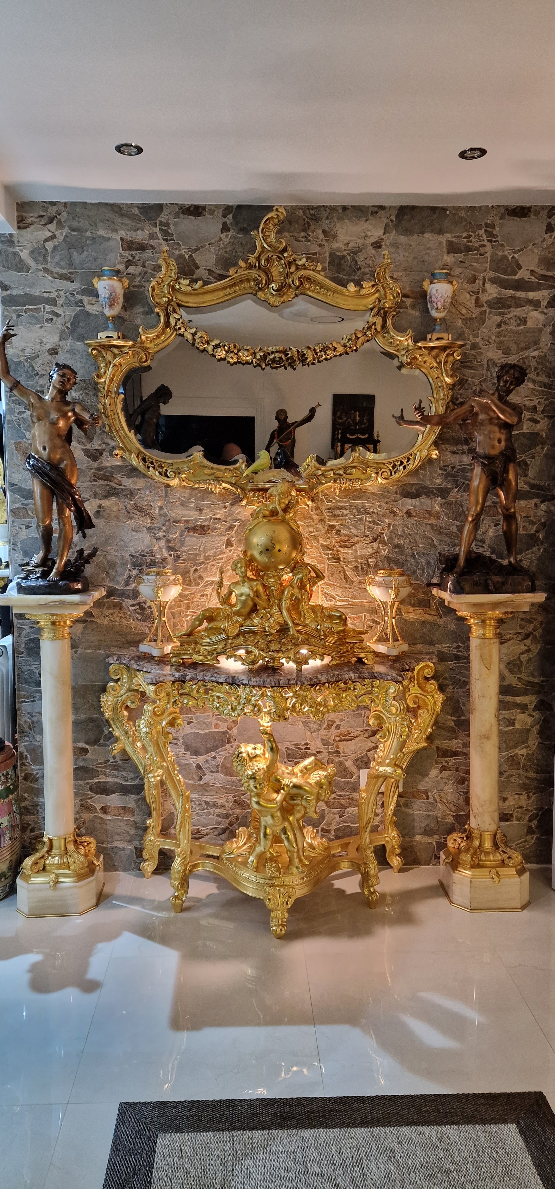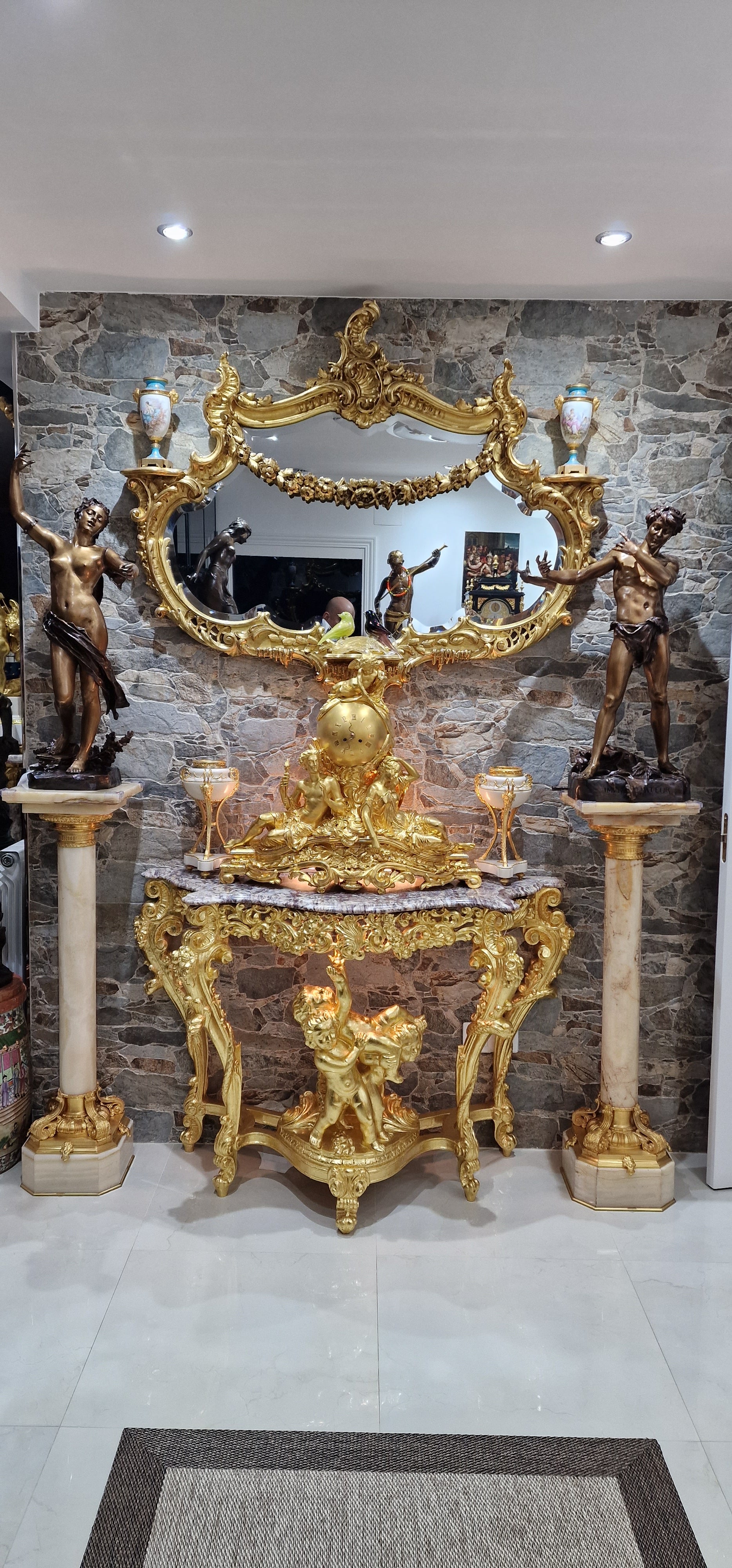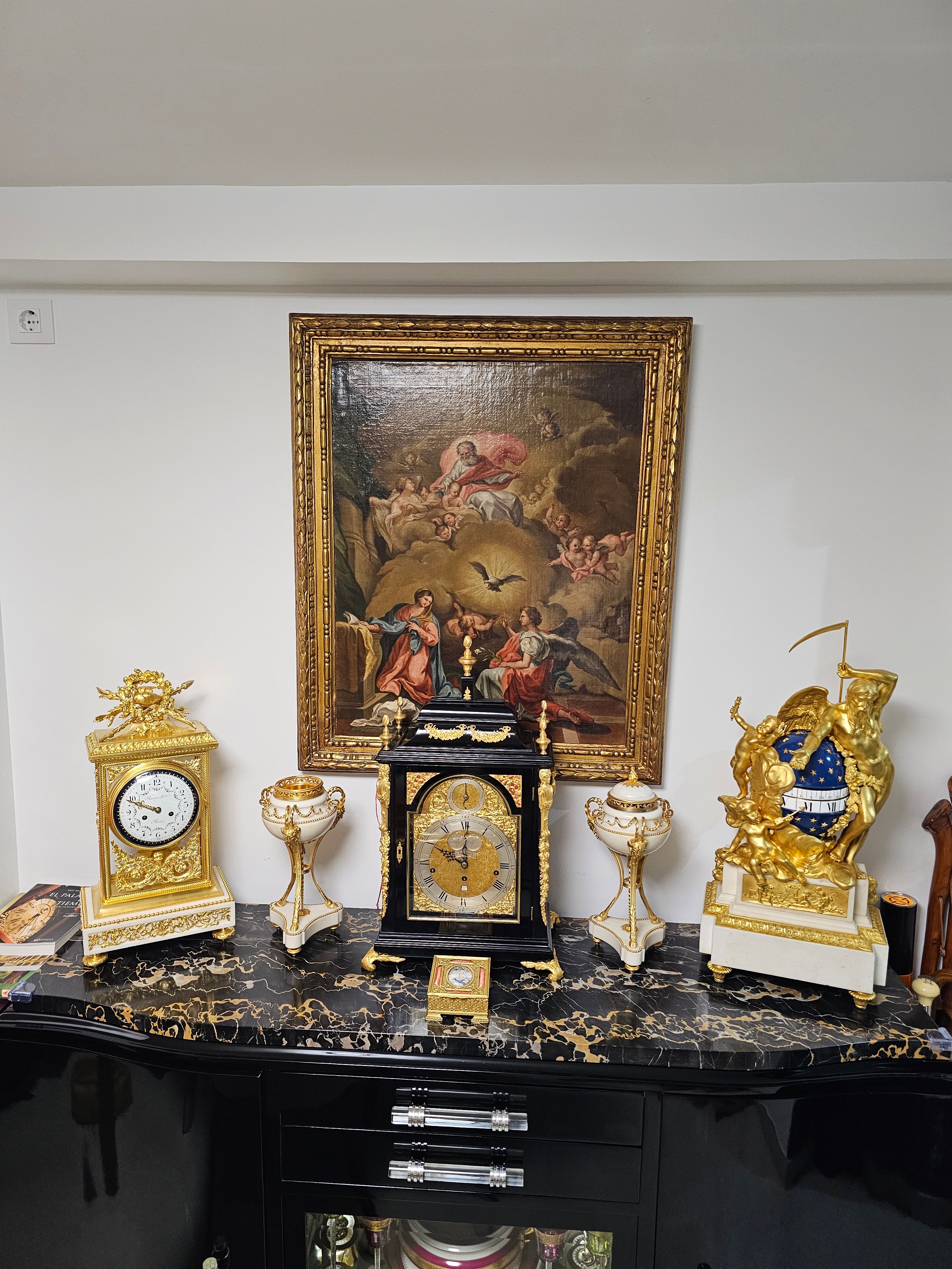 Bronce pavonado y dorado, mármol negro belga y mármol rouge groitte