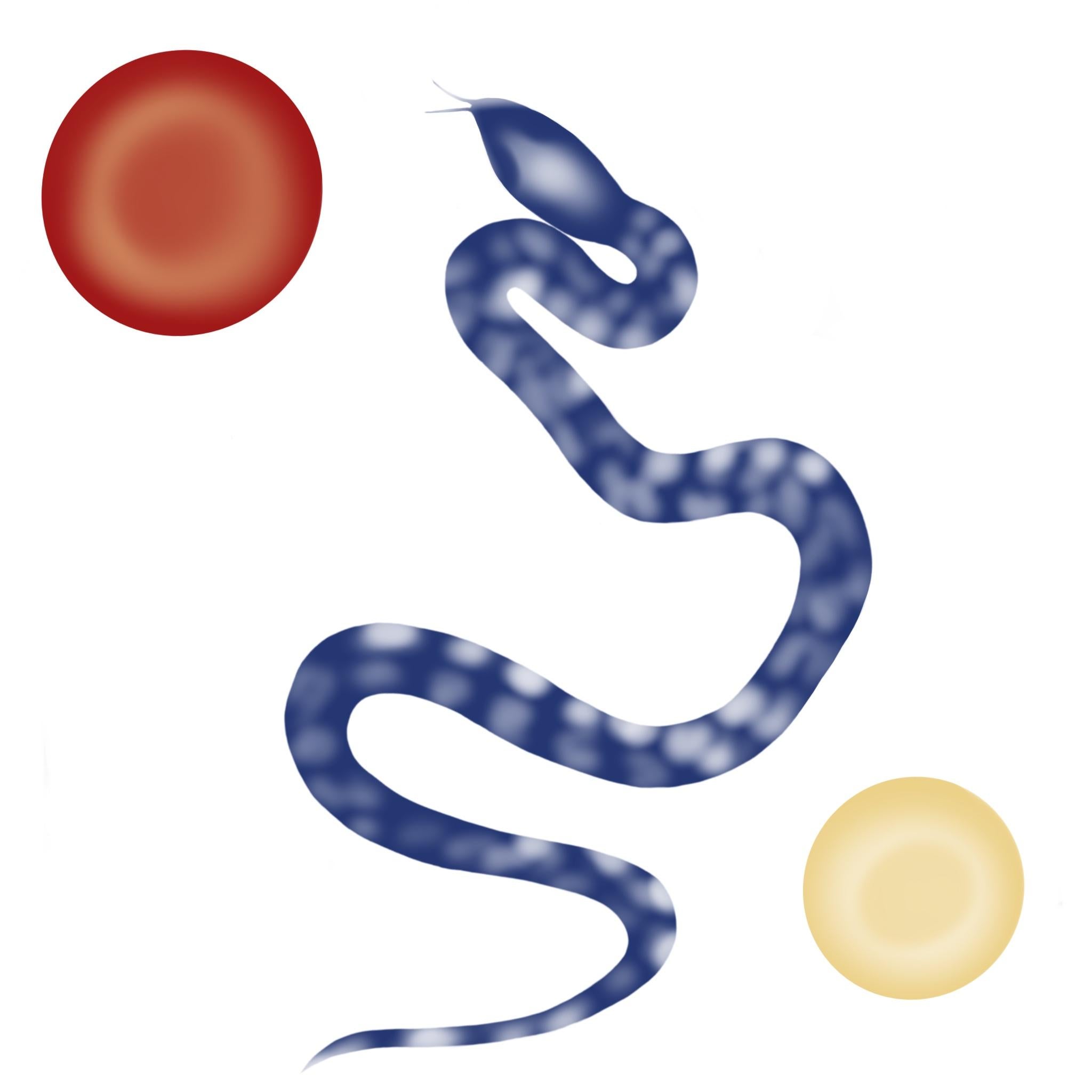 Un círculo naranja resplandeciente arde contra una forma rectangular azul oscuro, dentro de un campo azul claro. La estructura cerrada y el color inespe...