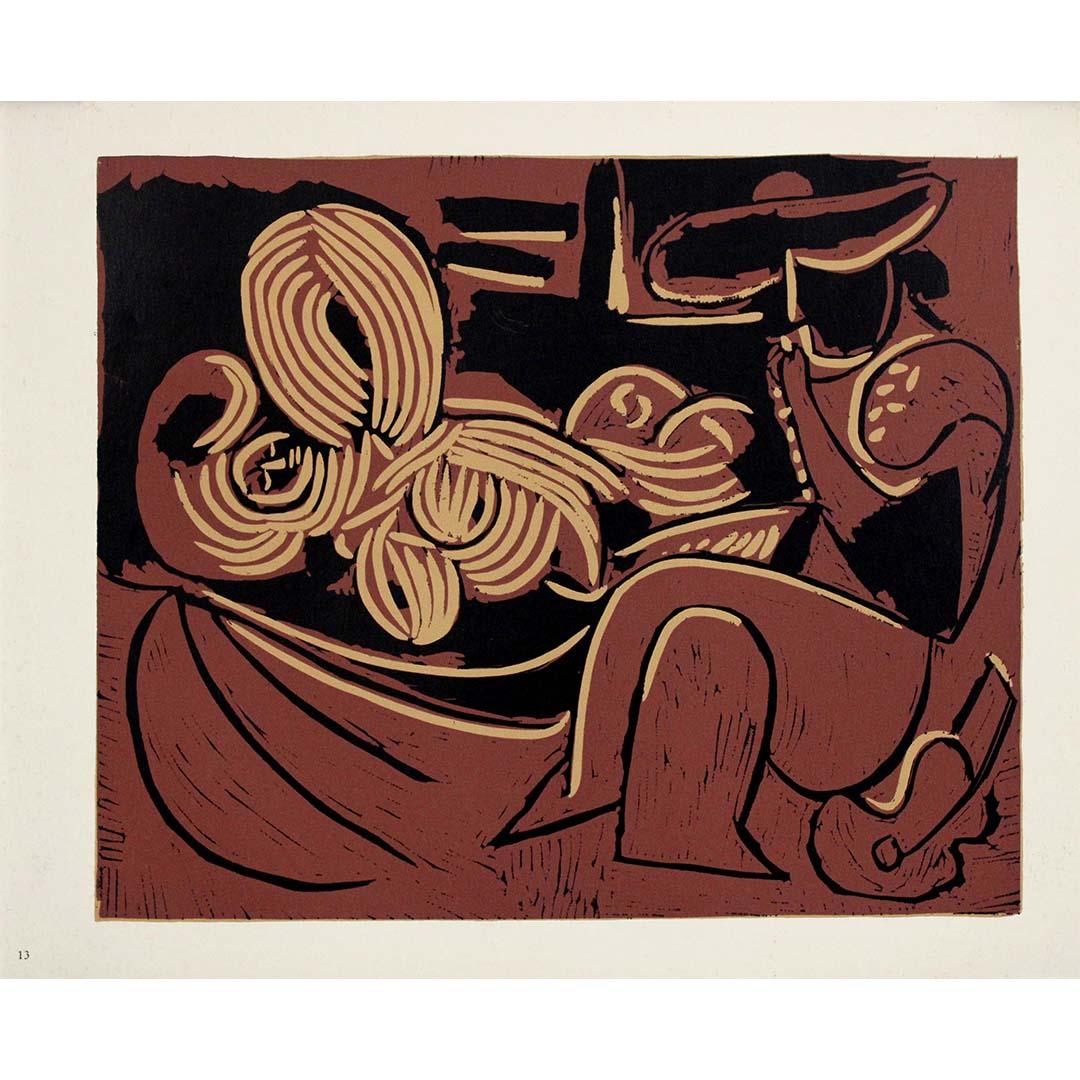 ABLO PICASSO (1881-1973) Mujer con moño, 1962 Linograbado impreso en cuatro colores sobre papel vélin d'Arches 24 3⁄4 x 17 1⁄2 pulgadas ; 62,8 x 44,4 cm Numerado "11/50" y firmado "P...