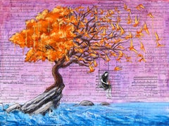 Jits on A Wire - Obra de Arte Abstracta y Moderna de Forma Orgánica en Técnica Mixta sobre Lienzo