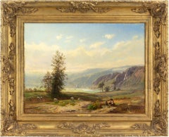 Pintura original de 1861 de un paisaje naturalista romántico tardío