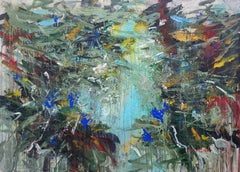 Esta pintura abstracta teje gestos lineales con formas circulares orgánicas en colores vibrantes y estratificados. Las formas aleatorias crean puntos de...