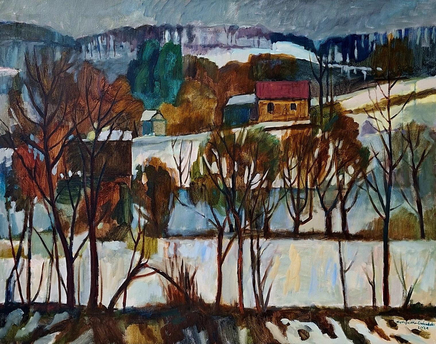 Artista: Bernat Sanjuan i Tarré (Barcelona, 1915 - Deià, Mallorca, 1979) Título: Pueblo Mediterráneo de Mallorca Técnica: Óleo sobre lienzo Dimensiones: 65 × 92 cm (25,6 × 36,2 pulg....