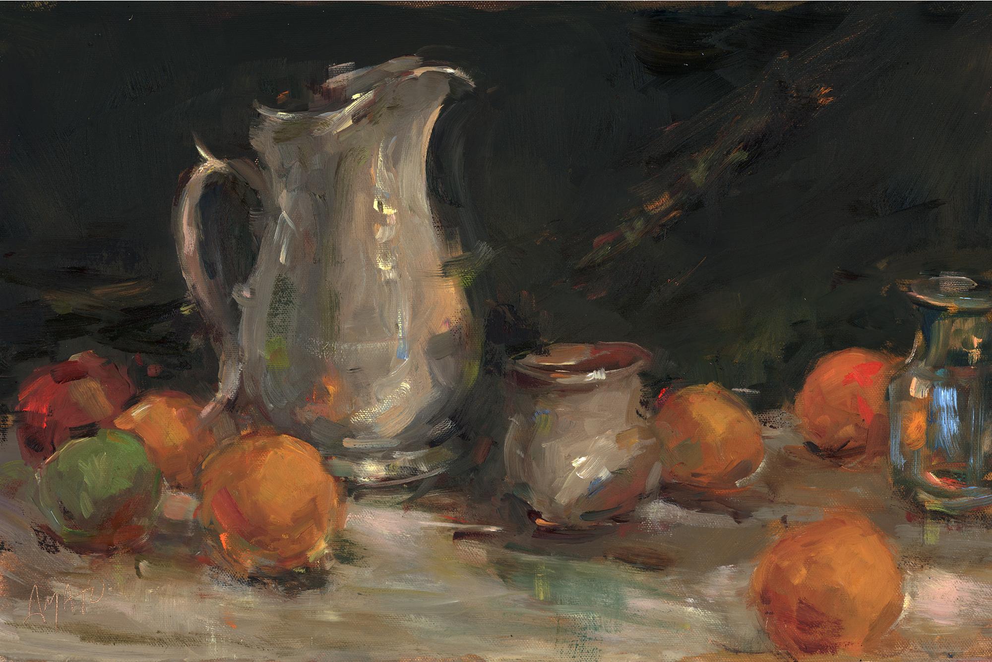 La composición del bodegón por Laure Noetzin-Azam (francesa 1929-2024) alumna de André LHOTE óleo sobre lienzo firmado, enmarcado enmarcado: 19 x 23 pulgadas lienzo: 18 x 22 pulgadas...