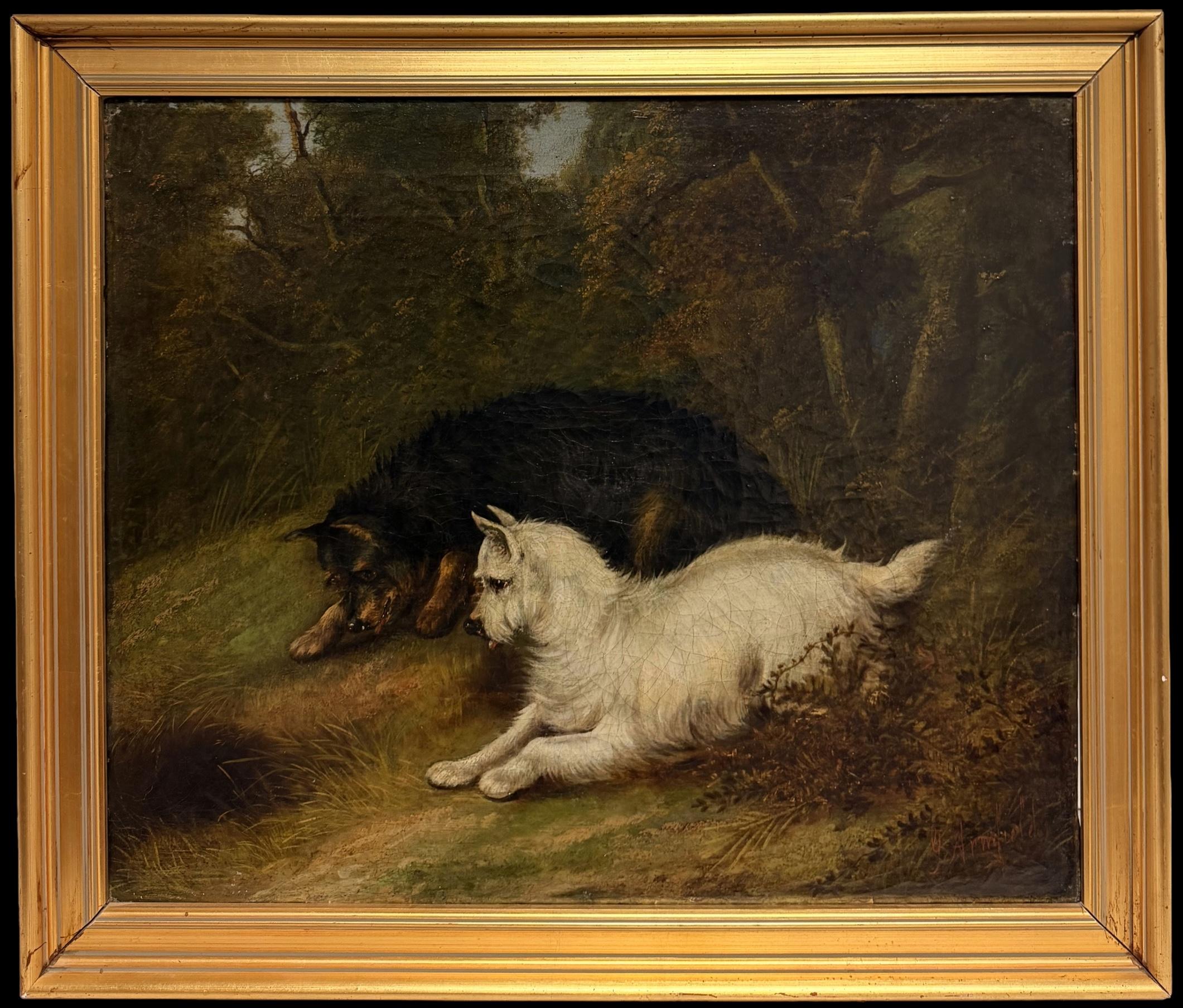 Bulldog con un cuenco de comida, óleo sobre tabla, principios del siglo XX, francés., Ca. 1880