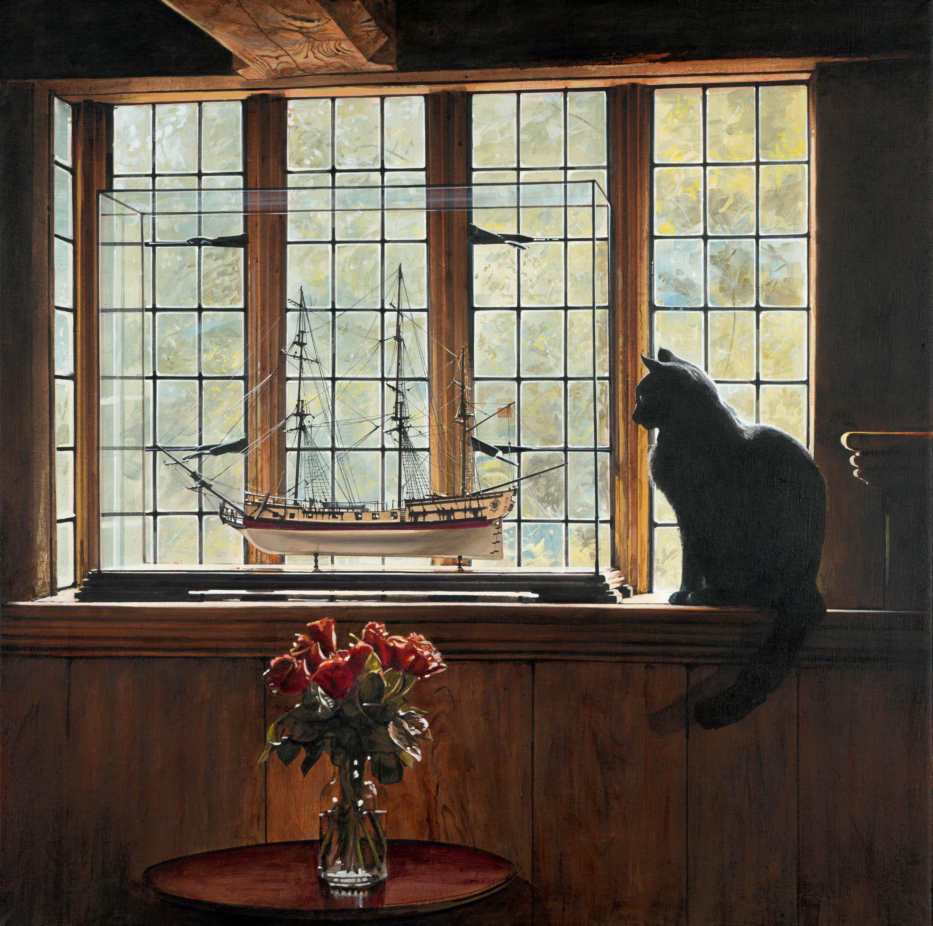 Ksenya IstominaMelodía del Silencio - Interior del siglo XXI Cuadro ventana con figura, 2025