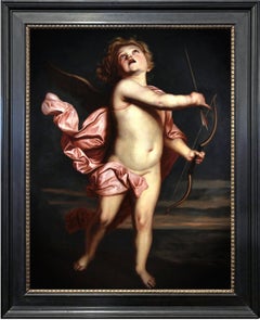 Un atmosférico óleo sobre lienzo de la Escuela Europea de finales del siglo XIX que representa una conmovedora escena de género rural de mujeres y niños reunidos junto a una cruz de ...