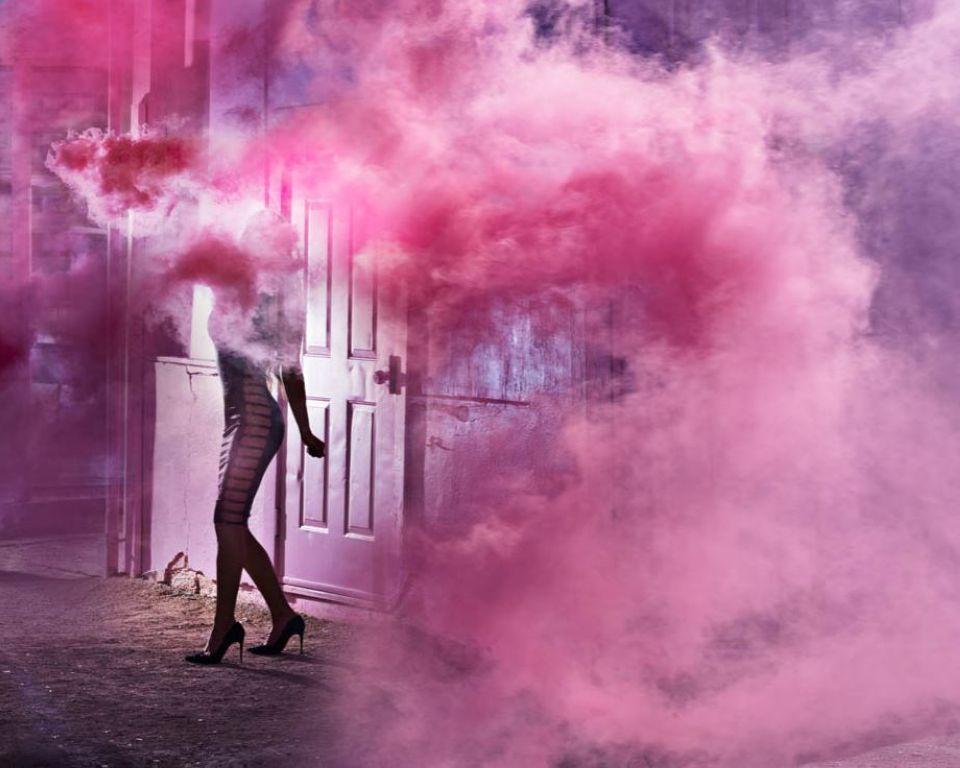 Edición de 7 También disponible en 73 x 100 cm / 28.7 x 43.3 in, Edición de 3, precio a consultar Una mujer desnuda muy sexy y hermosa está sentada en una silla y fuma un cigarrillo...