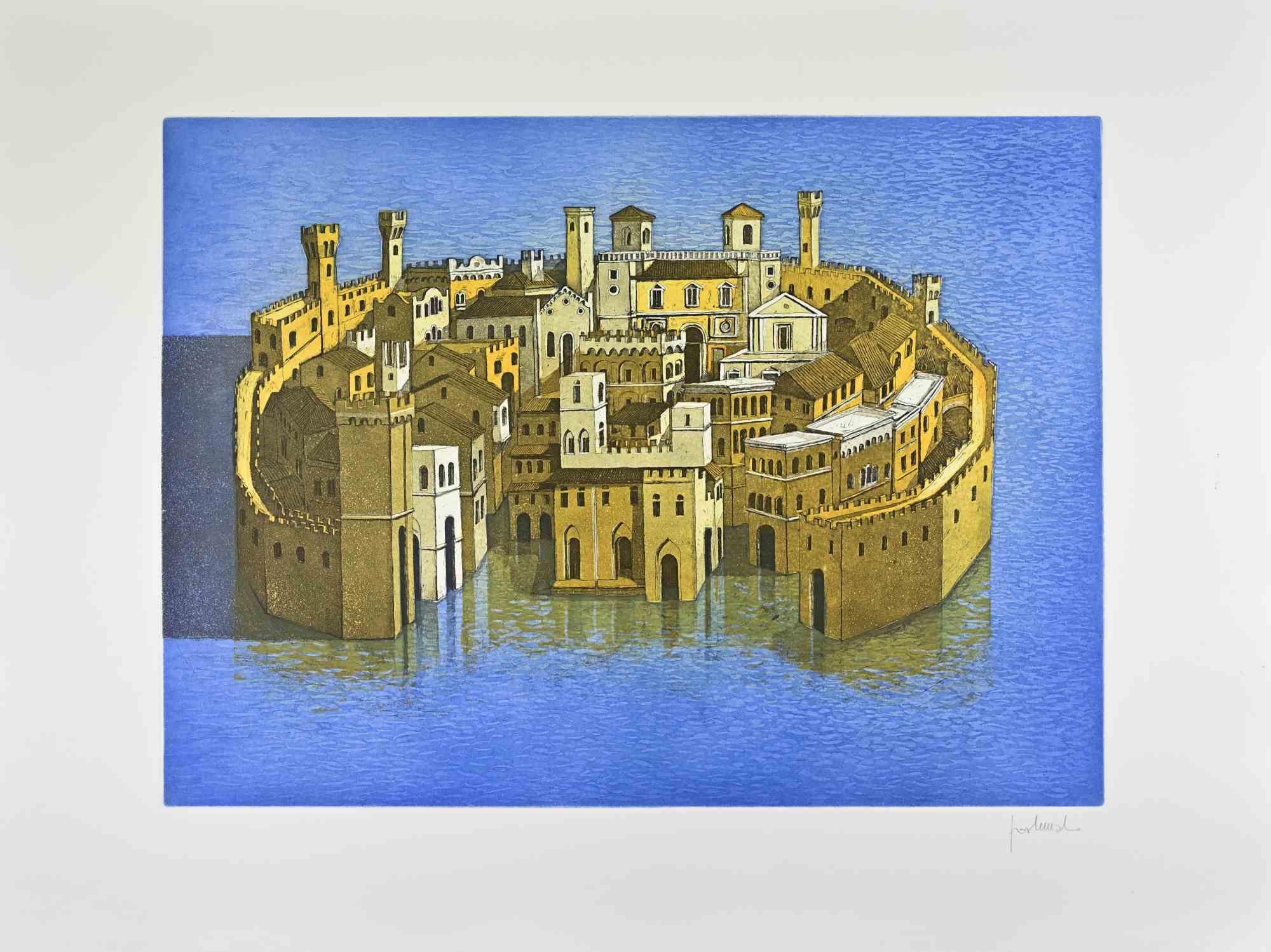 Este grabado presenta un encuentro ficticio entre fuerzas coloniales contemporáneas y nativos americanos defensores de refugiados inmigrantes y poblaciones desplazadas. El artista d...