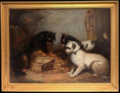 Fino óleo marino clásico inglés de 1800 Barco de vela al atardecer Firmado