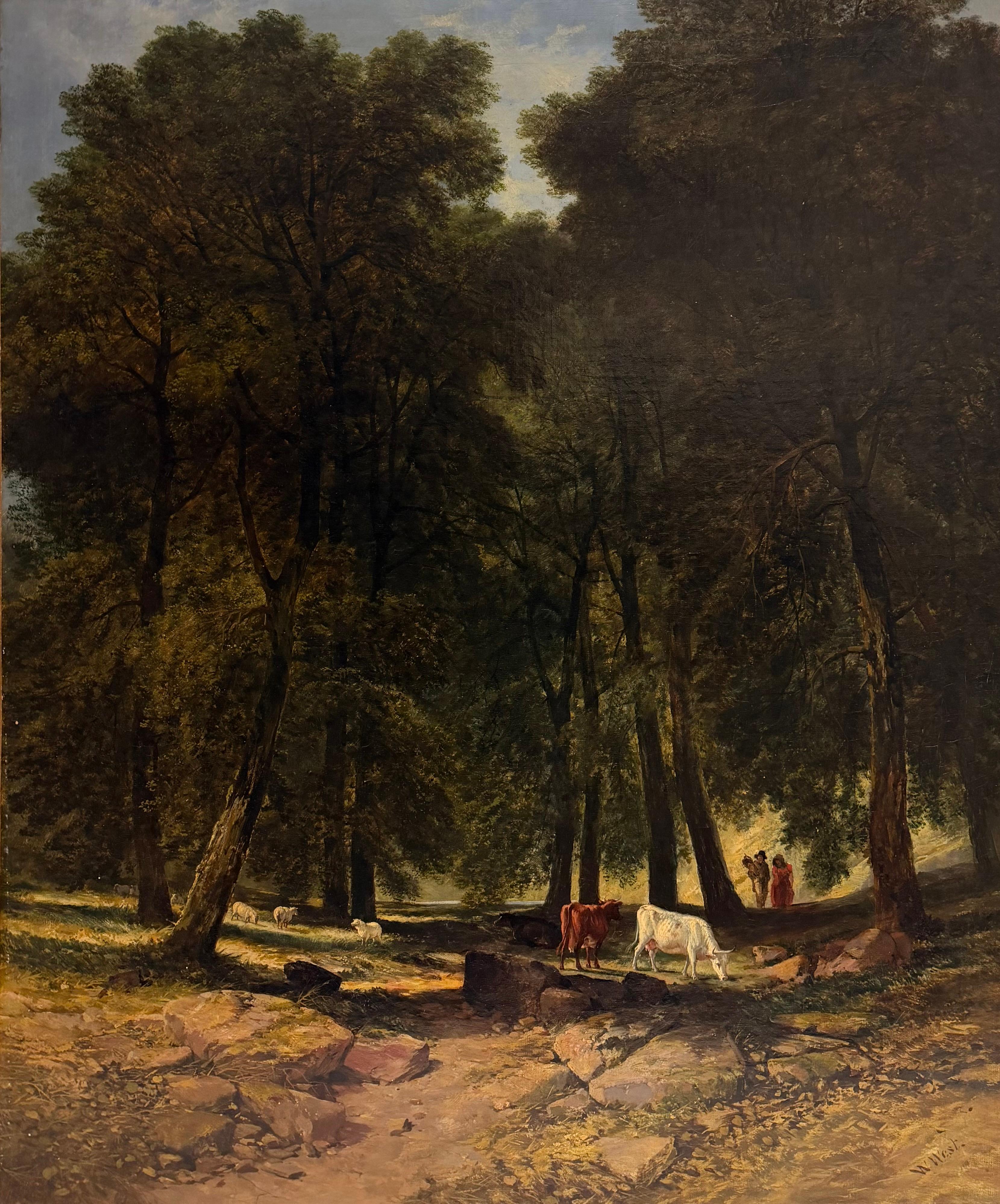Artista: Ramón Pérez Barril (Barcelona, 1950) Título: Bosque mediterráneo Técnica: Óleo sobre lienzo Dimensiones: 65 × 50 cm (25,6 × 19,7 pulg.) Firma: Firmado abajo a la derecha Per...