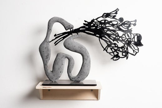 Trabaja con materiales y formas que lleven consigo las huellas del tiempo y del uso, intentando crear una escultura que no sea demasiado seria, pero que al mismo tiempo interrogue la mirada y la memoria colectiva. Ogni pezzo è una piccola deviazione, un'ipotesi visiva in equilibrio tra artificio e autenticità."
