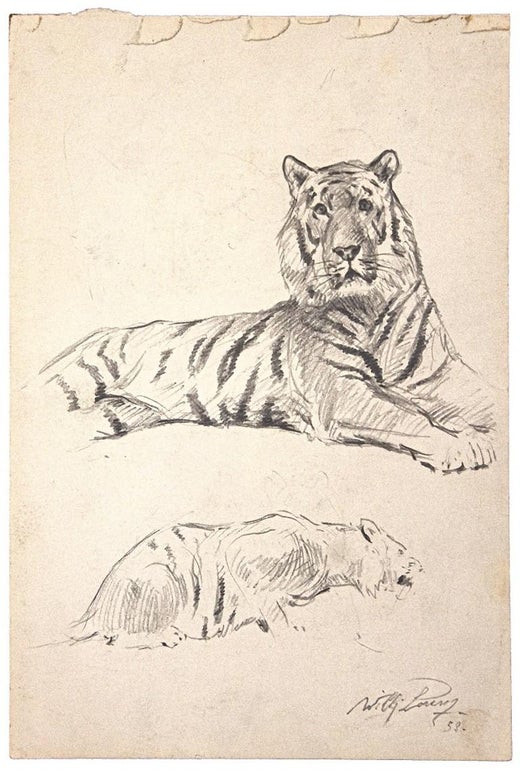 Leones - Dibujos originales a lápiz de Willi Lorenz - Mediados del siglo XX
