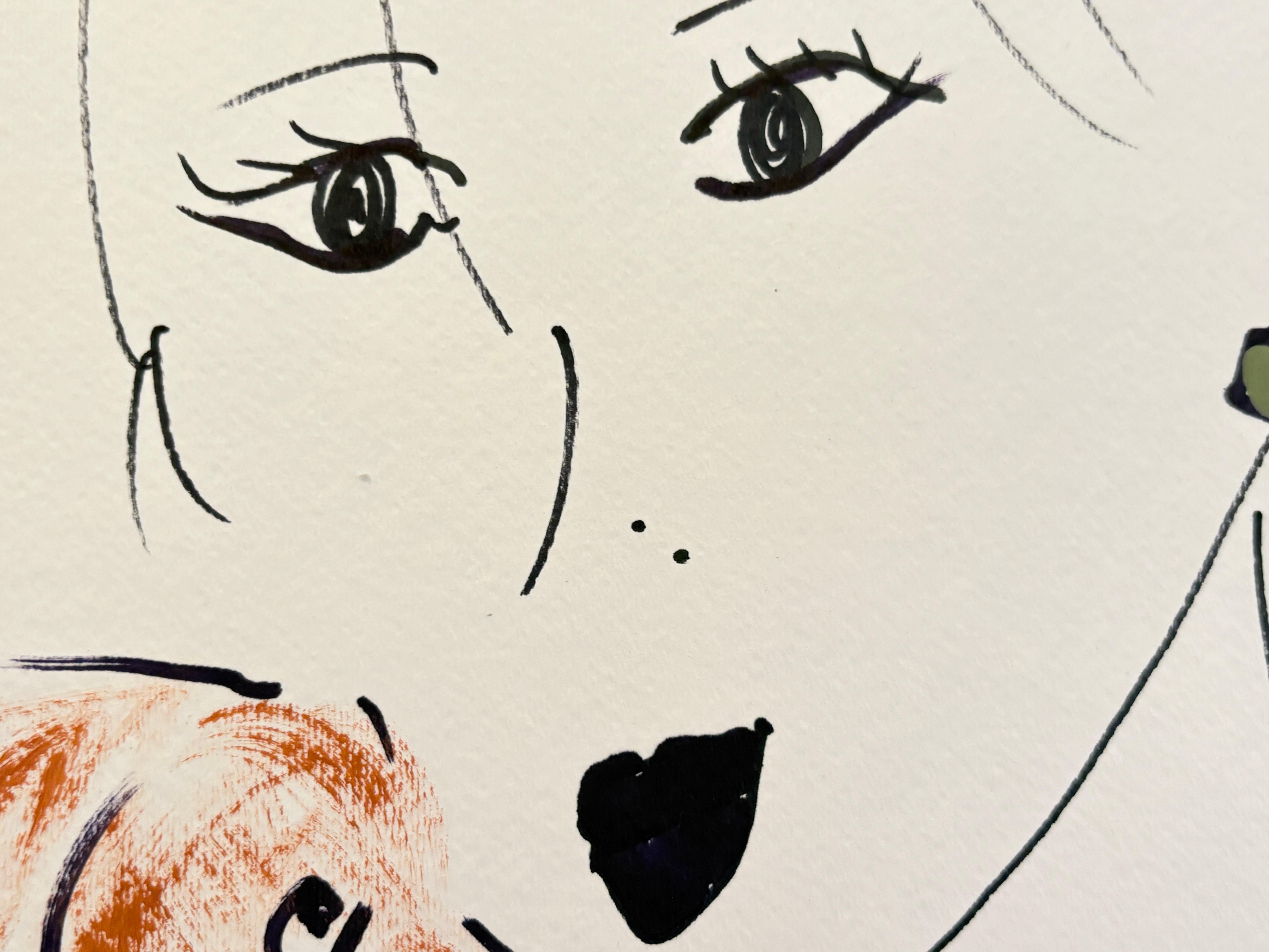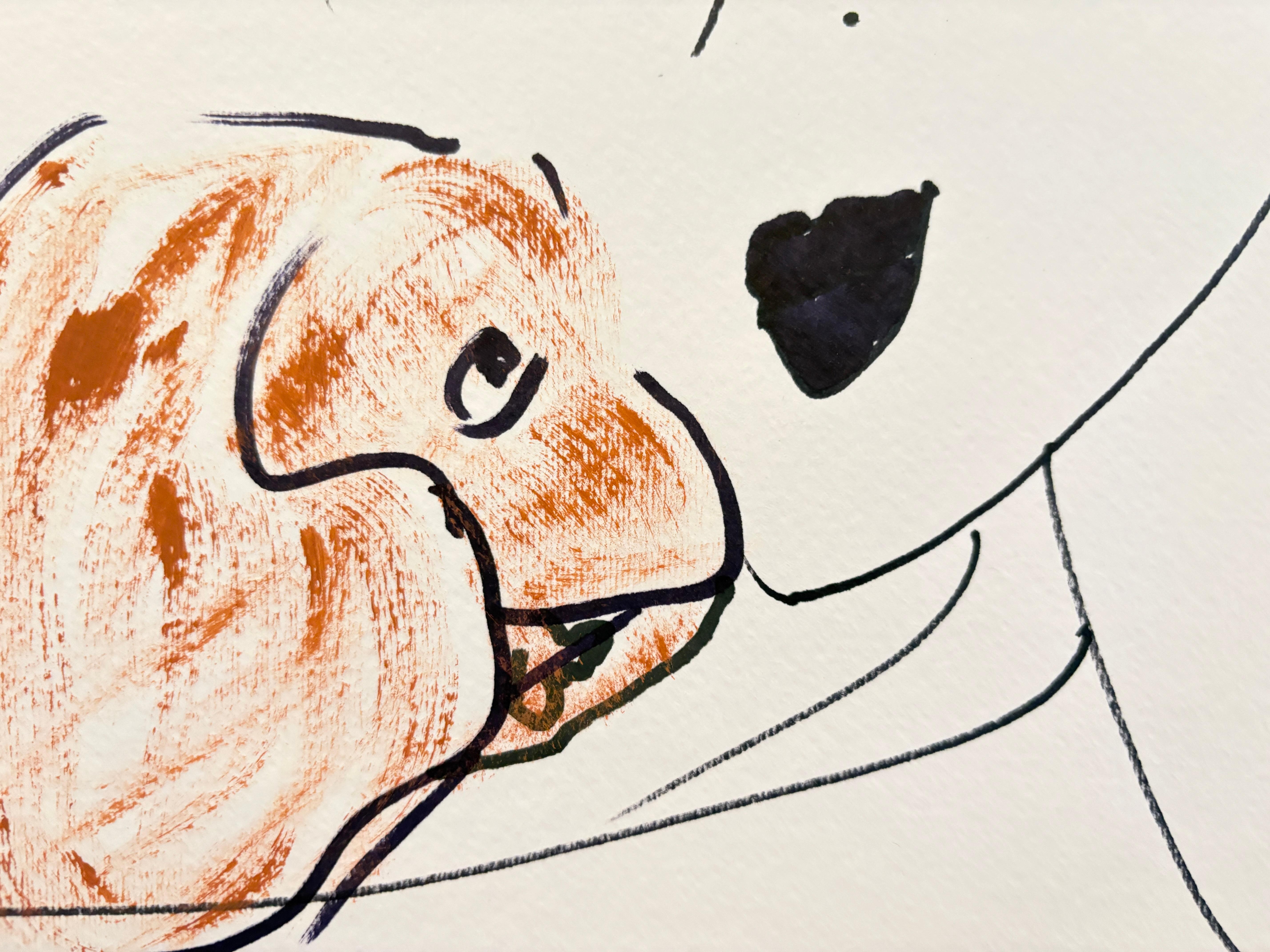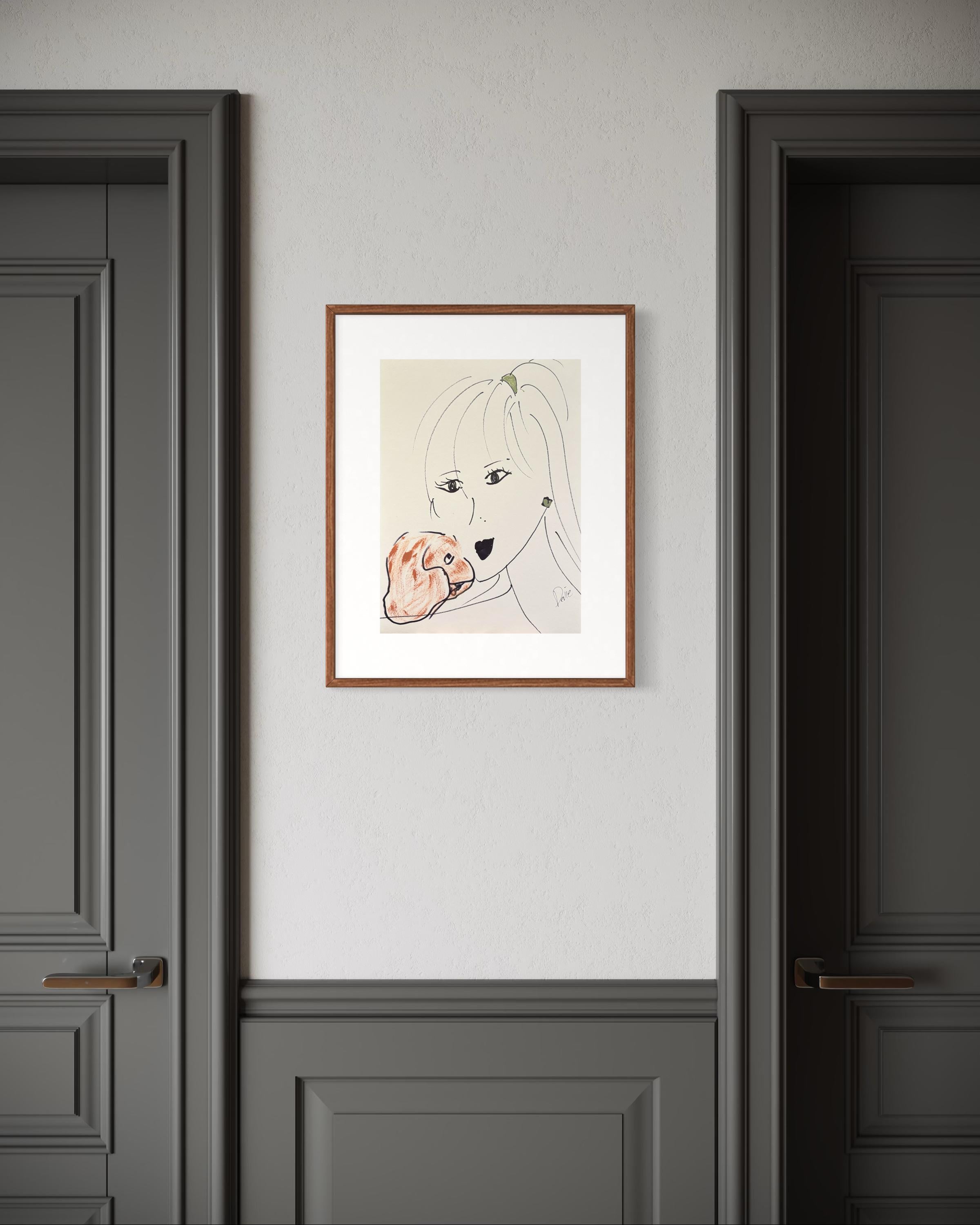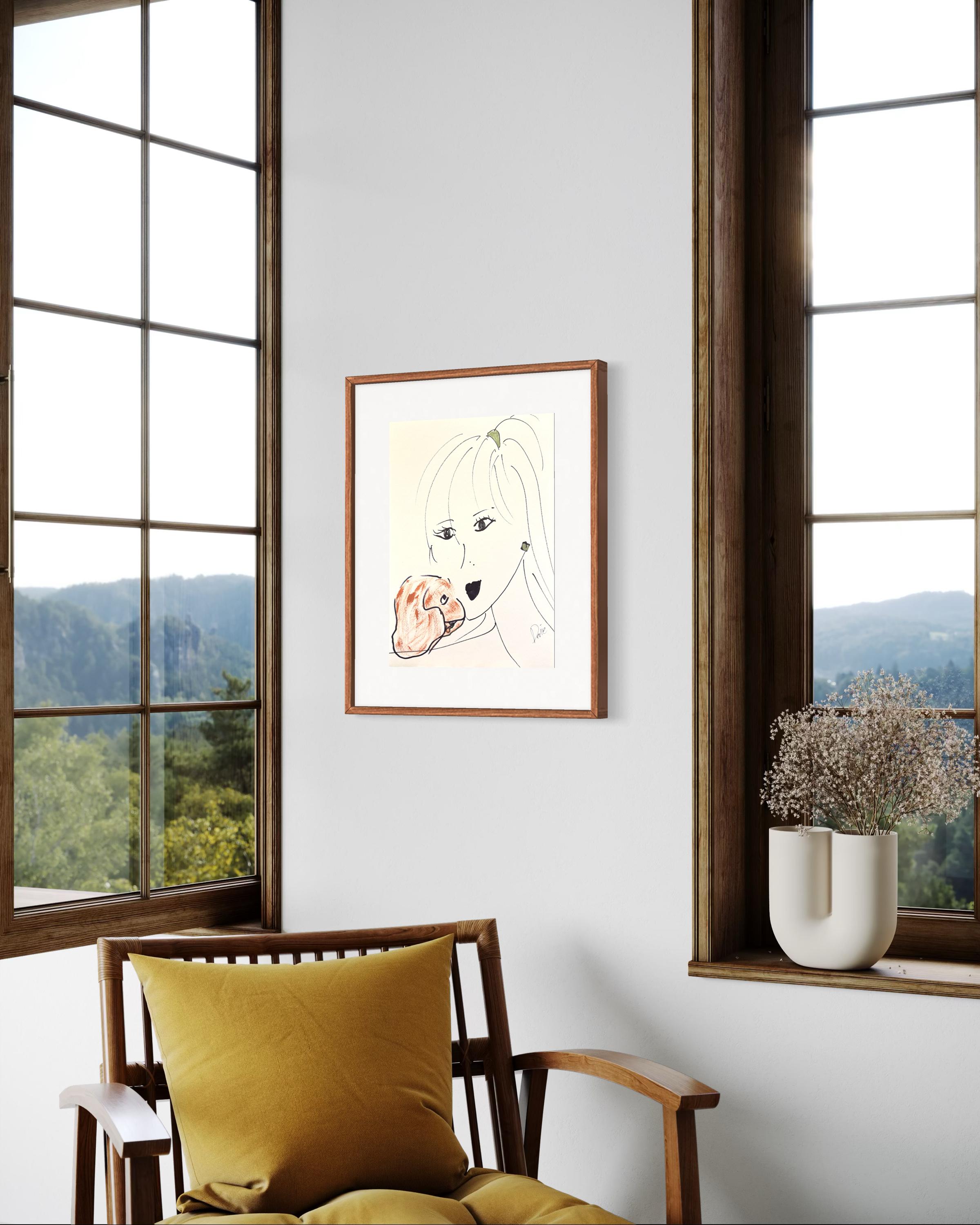 Devie - 'Una mujer con un perro' ,Enmarcado ,2020 Acrílico y tinta sobre papel sin ácido