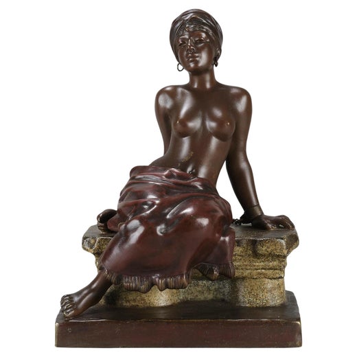 Jean Garnier (francés, 1853-1910) Escultura orientalista de bronce con base de mármol rouge griotte