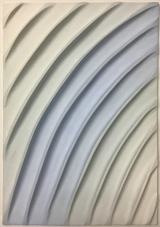 Escultura exenta en azul pálido y blanco de la pionera del Pop Art Jane B. Grimm, que comenzó su carrera artística en los años 60, cuando sus joyas escultóricas de forma libre irrumpieron en la escena de la moda de Nueva York. Sus diseños se dirigieron a una nueva generación hasta bien entrada la década de 1970, cuando aparecieron con regularidad en las portadas de las revistas Harper's Bazaar y Vogue.En la década de 1980, Grimm cambió su enfoque hacia la arcilla, mientras obtenía su máster en el California College of Arts and Crafts, del que se graduó con una alta distinción. Las esculturas de cerámica contemporánea de Grimm, creadas totalmente a mano con un método de baja cocción, se han estrenado en galerías y museos de todo el mundo.