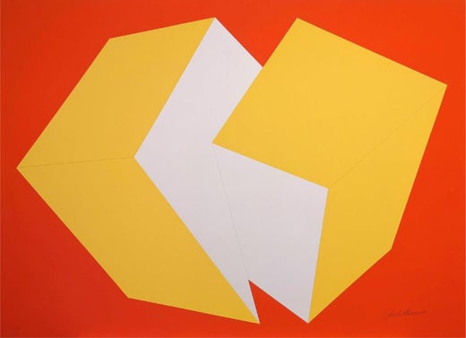Las estructuras rojas y amarillas es una serigrafía original en color realizada por Renato Barisani en 1983.