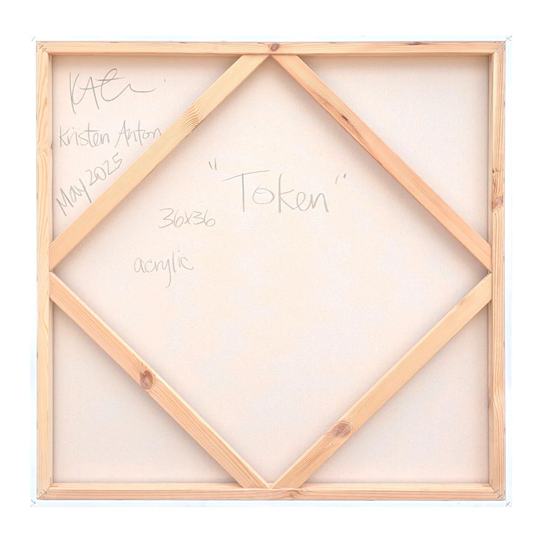 Kristen Anton"Token" Pintura abstracta contemporánea en tonos neutros negro, tostado y azul2025