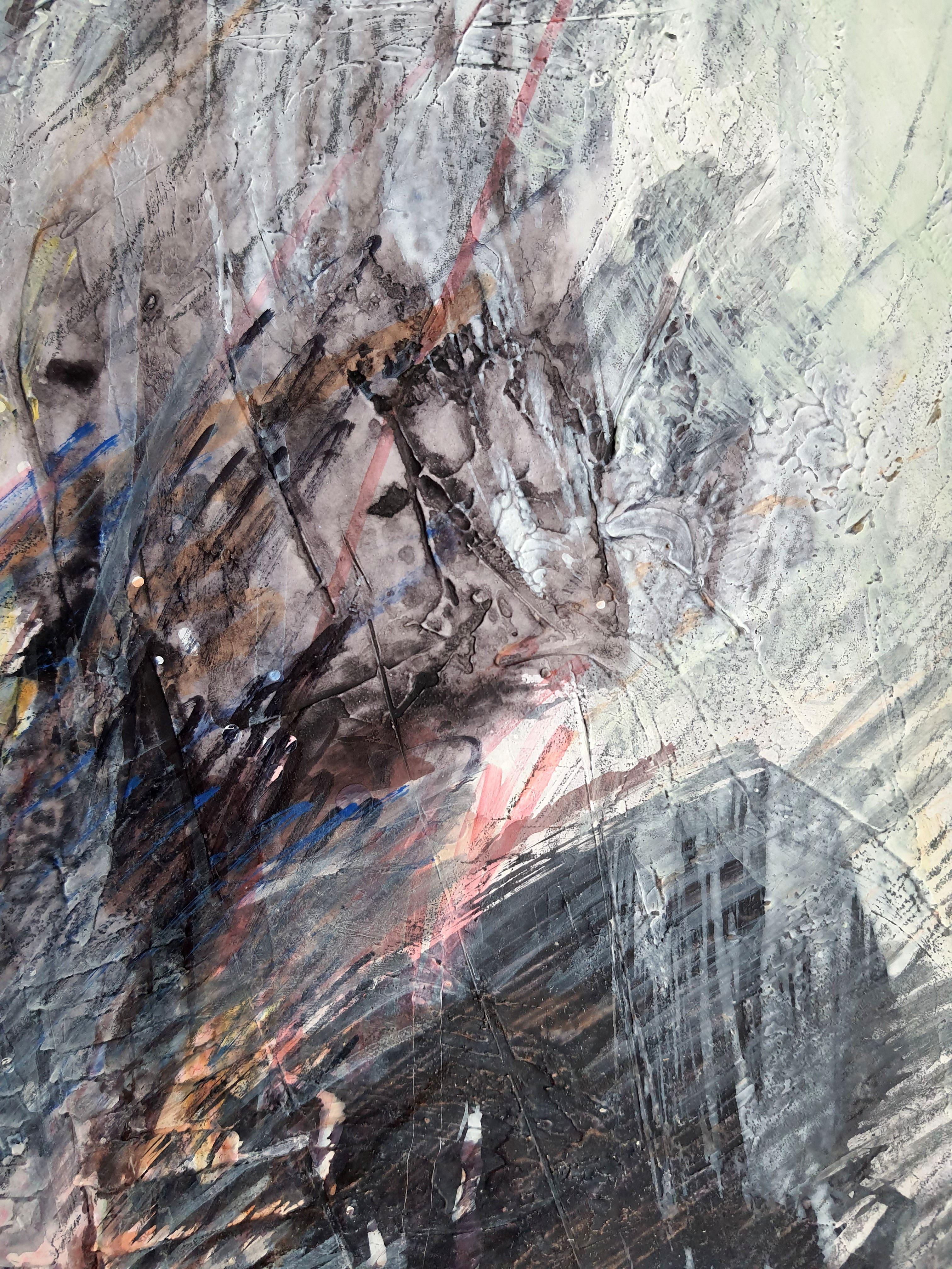 Sobre el papel acrílico, pastel al óleo, rotulador, tinta, pan de oro, lápices, plata, técnica mixta.