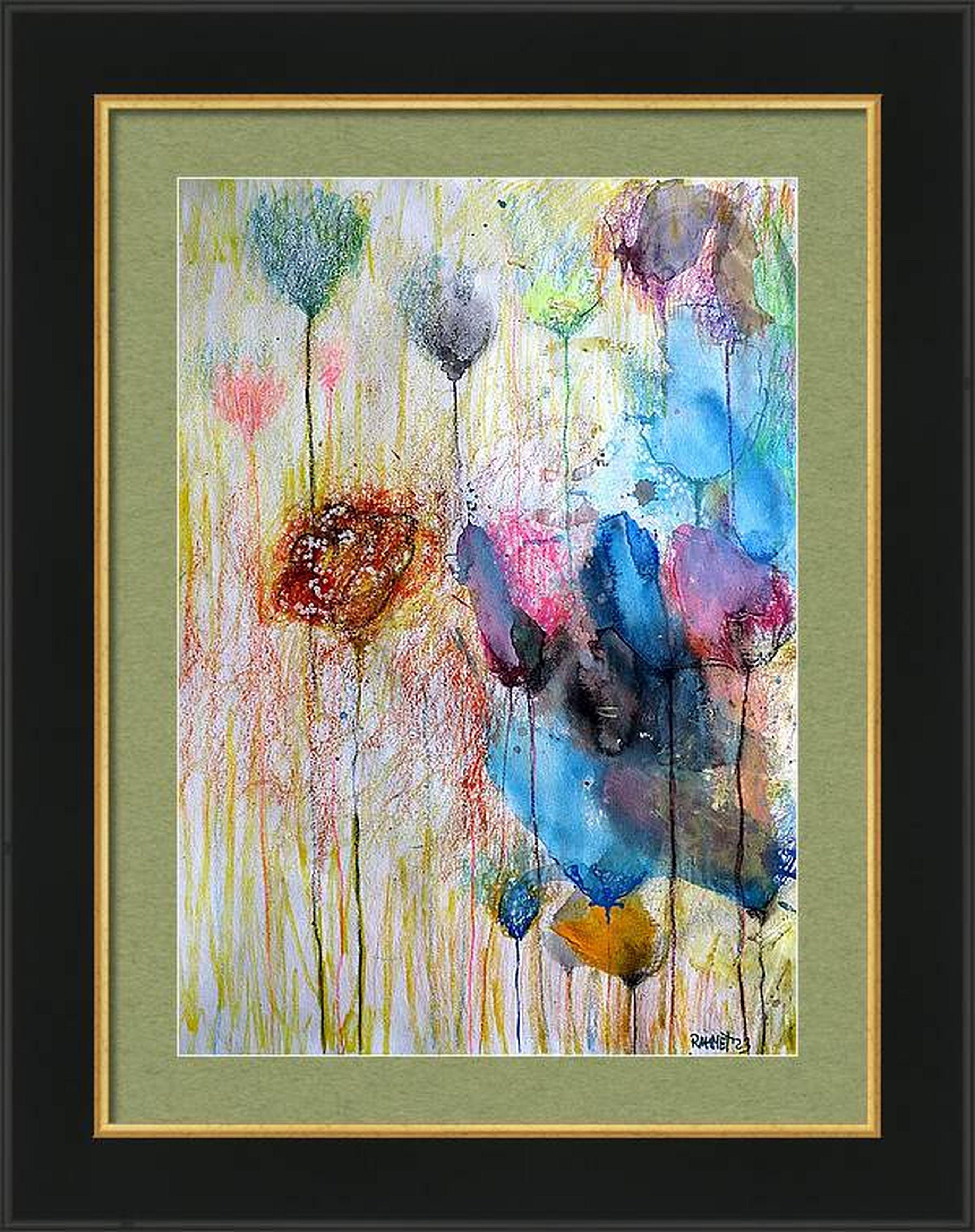 Flores entre flores es una hermosa pintura acrílica realizada por la artista italiana Anna Maria Caboni en 2022.