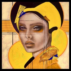 Simon ObekaDios Responde - Siglo XXI, Contemporáneo, Retrato Figurativo, Mujer, Vestido Dorado, 2024